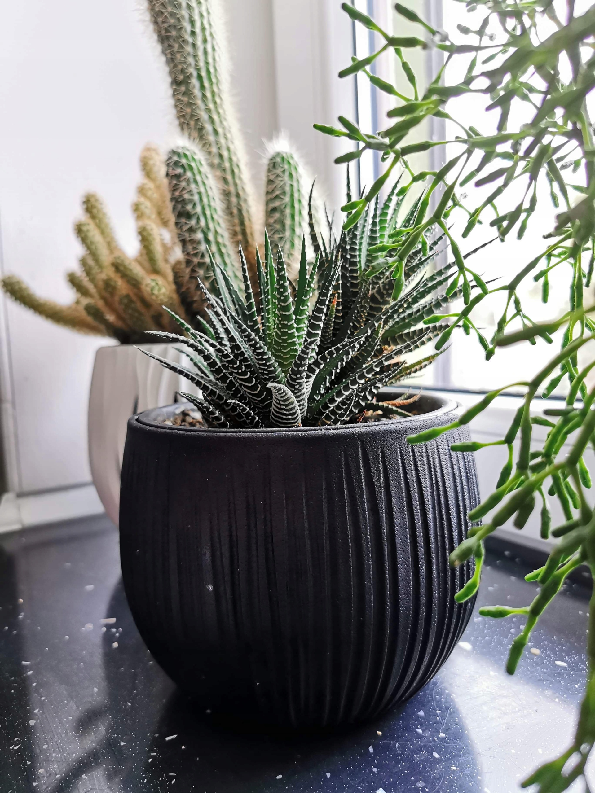 Doniczki wykonane z trwałego plastiku, który imituje beton. Nowoczesny design, doda każdemu wnętrzu stylu i elegancji. Mogą służyć jako osłonki, ale także jako doniczki.