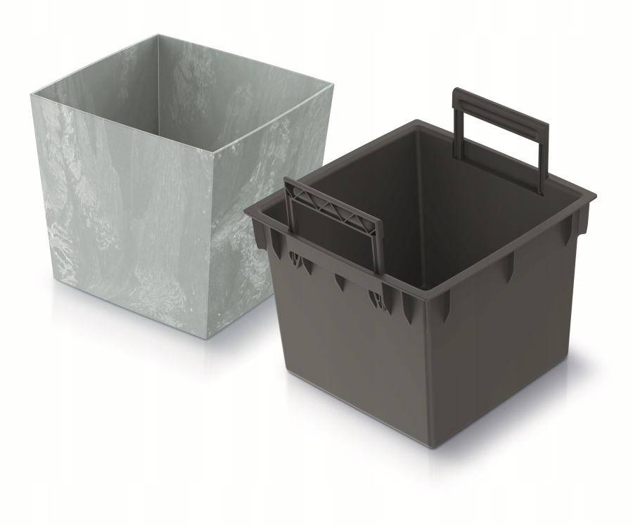 Klasyczna kwadratowa forma wzbogacona współczesnym wykończeniem z efektem betonu. Dostępna w wersji niskiej i wysokiej, aby dopasować się do indywidualnych potrzeb użytkowników. Doniczka jest wyposażona we wkładkę chroniącą przed wysypywaniem się ziemi.