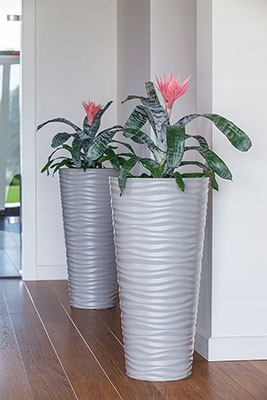Produkt z przeznaczeniem do wewnątrz oraz na zewnątrz budynków. Mrozoodporne donice o ciekawej powierzchni z efektem przypominającym pofalowane piaski pustyni. Doniczka swoją wysublimowaną estetyką ocieplą surowe pomieszczenia, odmienią nie do poznania trakty, pasaże czy skwery. Sprawdzą się również w miejskiej przestrzeni publicznej, np. przyjaznych do wypoczynku i spotkań, niezwykle modnych patio.