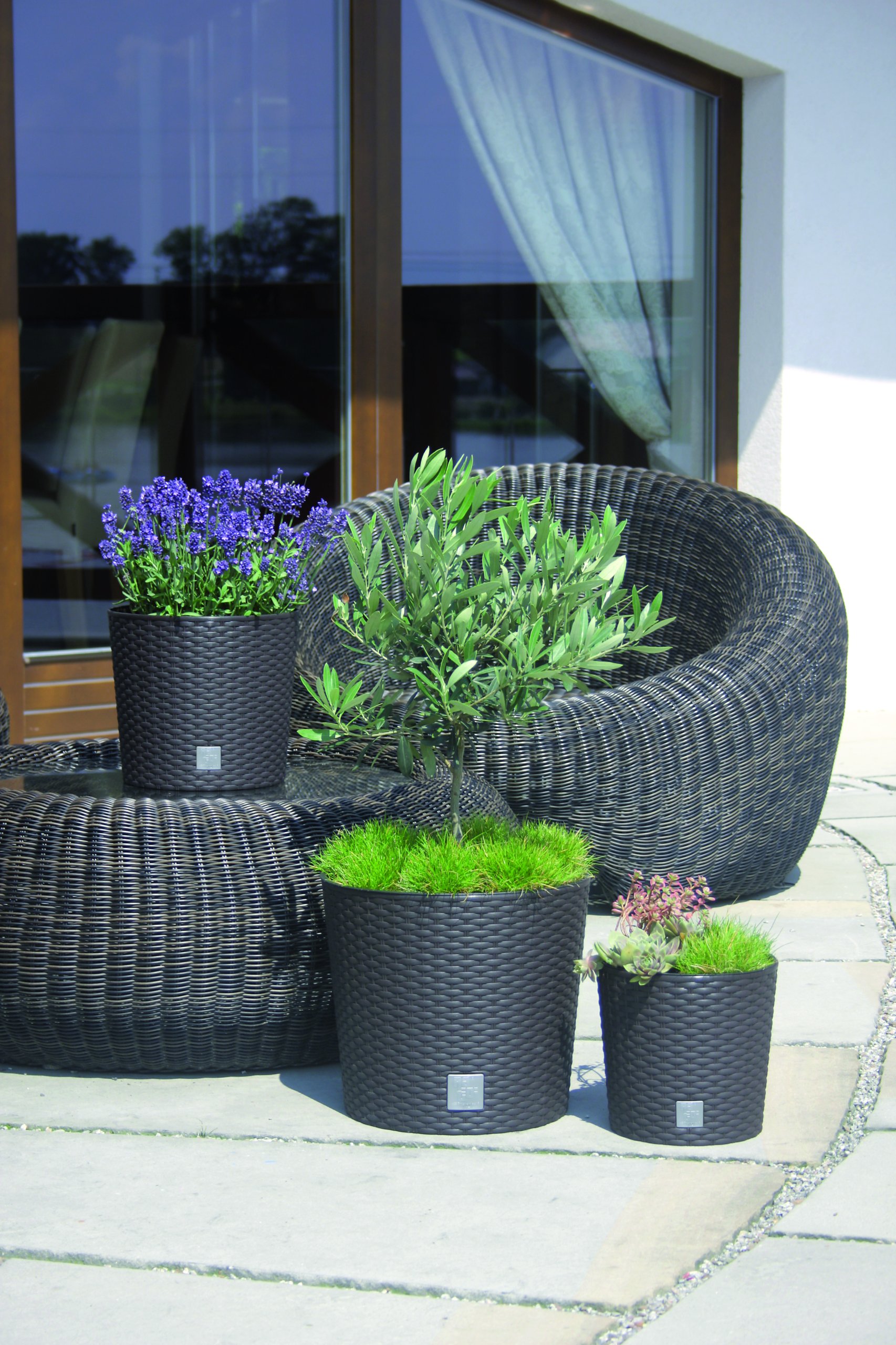 Wysokie, smukłe doniczki o bardzo nowoczesnym designie i fakturze wiernie imitującej plecionkę z naturalnego rattanu. Pozwalają kreować piękne unikatowe wnętrza i bez ograniczeń aranżować przestrzeń wokół domu. Wykonane z wysokiej jakości tworzywa sztucznego, odpornego na warunki atmosferyczne oraz promienie UV. Produkt z przeznaczeniem do wewnątrz oraz na zewnątrz budynków.Zestaw zawiera: