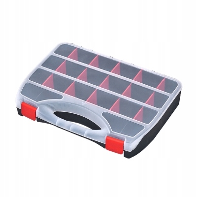 Organizer składa się z pięciu głównych komór, trzy z nich dodatkowo posiadają 15 wyjmowanych przegród.