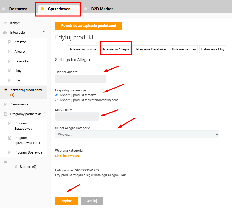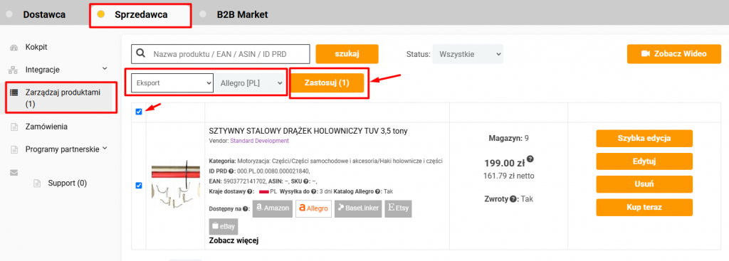 Eksport produktów na marketplace jako Sprzedawca – przykład Allegro