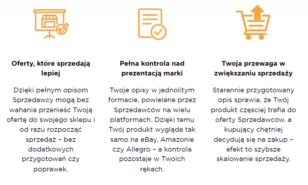 Taki opis zachęca Sprzedawców do dodania produktu do swojej oferty, a odbiorcy końcowi szybciej decydują się na zakup. To fundament konwersji, niezależnie od tego, na jakiej platformie sprzedajesz.