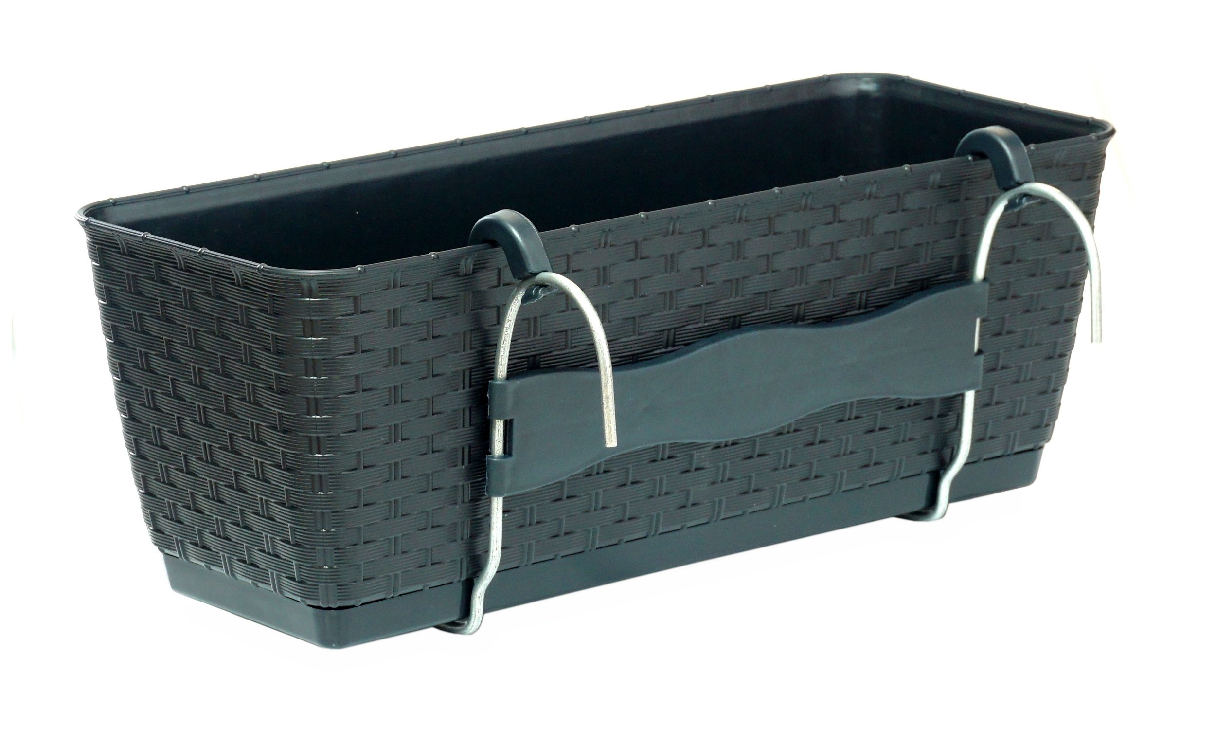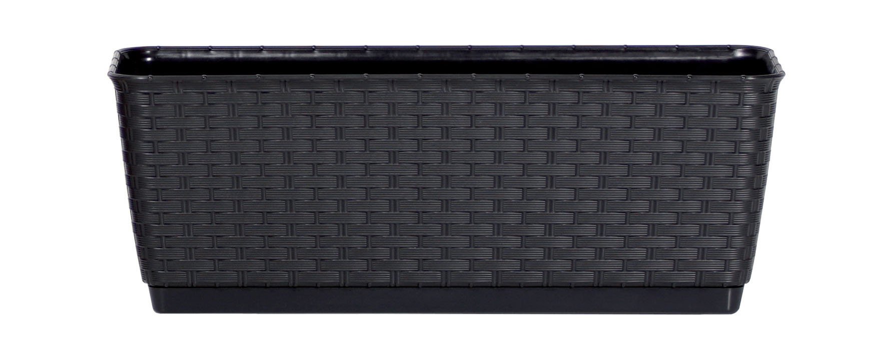 Podłużna doniczka balkonowa z podstawką RATOLLA PW o fakturze wiernie imitującej plecionkę z naturalnego rattanu. Pozwala kreować piękne unikatowe wnętrza i bez ograniczeń aranżować przestrzeń wokół domu. Dzięki klasycznej, czystej formie nadaje się do wszystkich pomieszczeń, godząc różne style i upodobania. Jej funkcjonalność wyraża się przede wszystkim w komforcie użytkowania bez względu na aurę. Doniczka posiada w zestawie wkład umożliwiający prawidłowe nawadnianie roślin oraz haki i zabezpieczenia do montażu na balustradach.