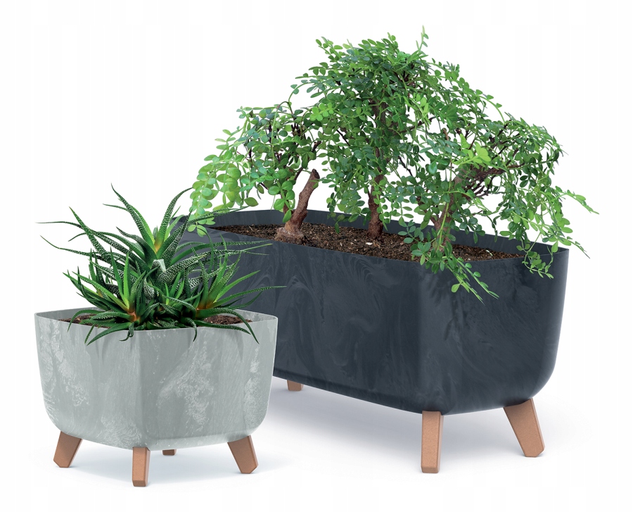 Funkcjonalna forma wzbogacona współczesnym wykończeniem z efektem betonu. Gracia jest idealna do uprawy sadzonek lub rozchodników, a dzięki dodanym nóżkom, idealna jest do wyeksponowania zielonych aranżacji podłogowych wewnątrz i na zewnątrz.