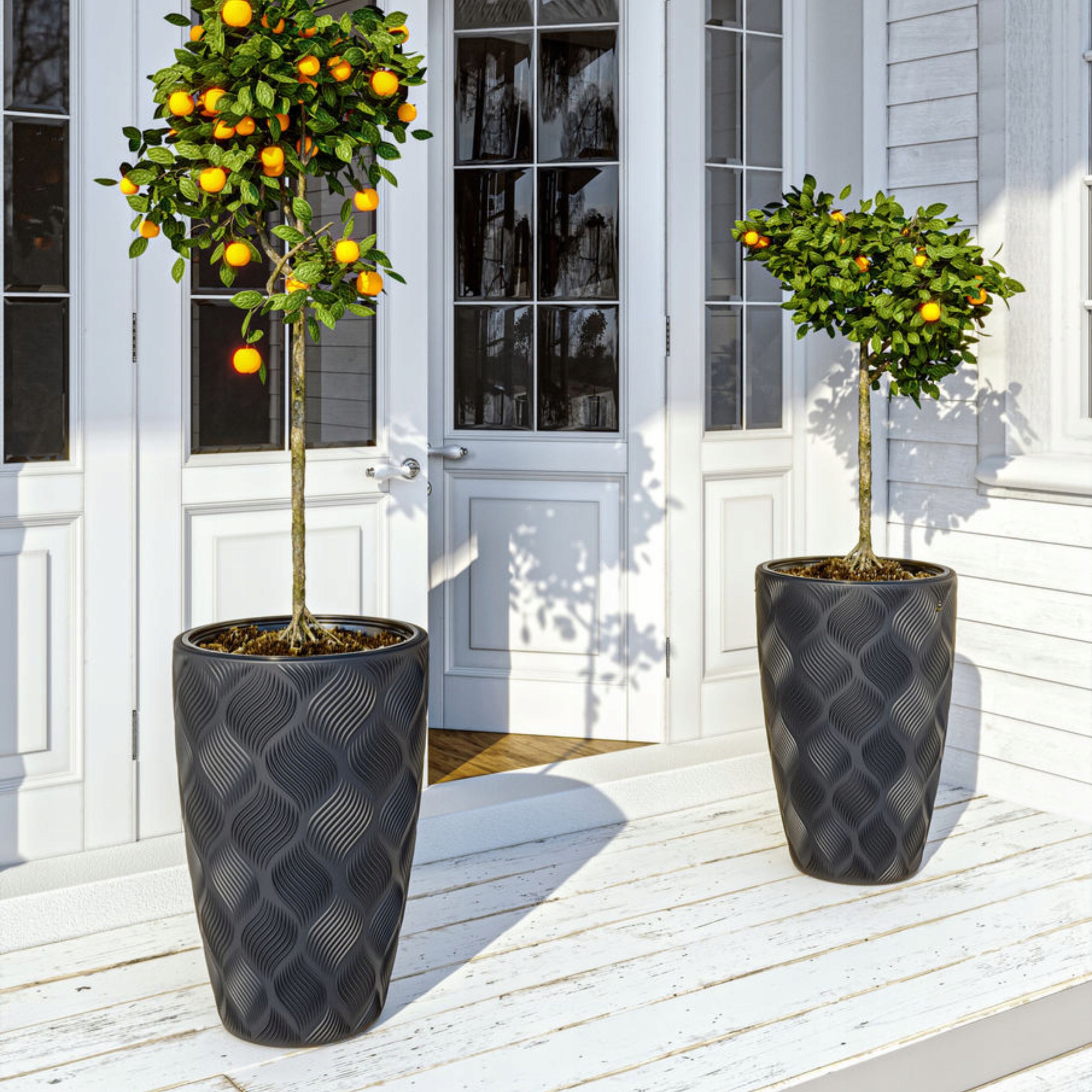 Produkt z przeznaczeniem do wewnątrz oraz na zewnątrz budynków. Mrozoodporne donice o ciekawej powierzchni. Doniczka swoją wysublimowaną estetyką ocieplą surowe pomieszczenia, odmienią nie do poznania trakty, pasaże czy skwery. Sprawdzą się również w miejskiej przestrzeni publicznej, np. przyjaznych do wypoczynku i spotkań, niezwykle modnych patio.