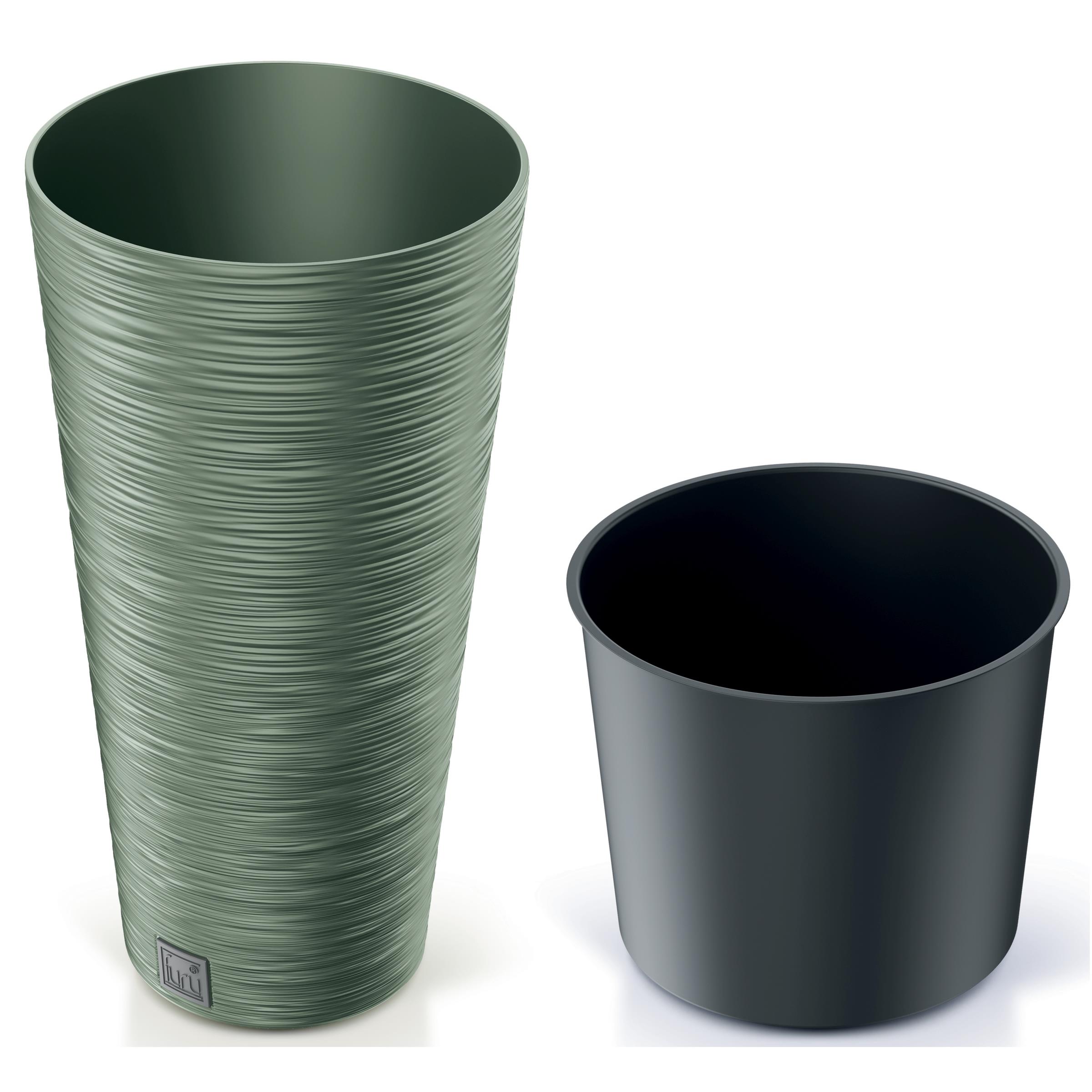 Doniczka okrągła Furu Slim DFRH300 z wkładem – Ziemisty zielony