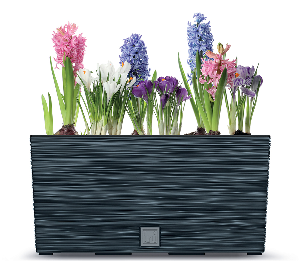 Ciekawa forma klasycznej skrzynki na rośliny. Prążkowana struktura sprawia, że kolekcja Furu jest solidna, a jednocześnie elegancka. Każda skrzynka Furu wyposażona jest we wkładkę chroniącą przed wysypywaniem się ziemi.