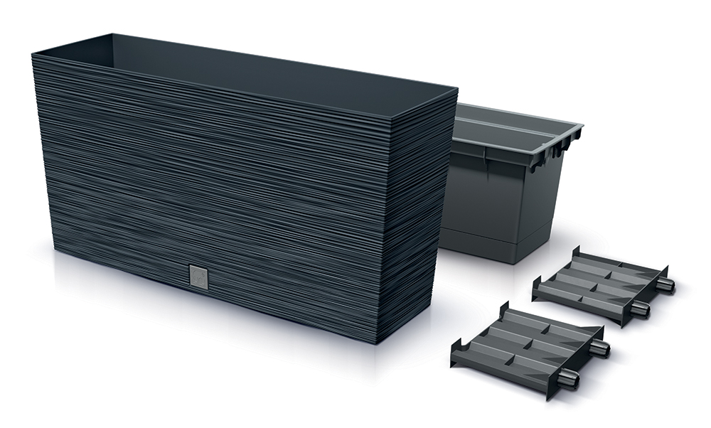 Ciekawa forma klasycznej skrzynki na rośliny. Prążkowana struktura sprawia, że kolekcja Furu jest solidna, a jednocześnie elegancka. Każda skrzynka Furu wyposażona jest we wkładkę chroniącą przed wysypywaniem się ziemi