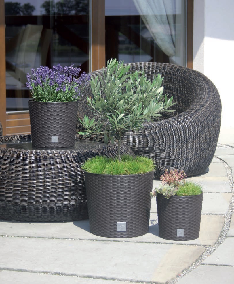 Wysokie, smukłe doniczki o bardzo nowoczesnym designie i fakturze wiernie imitującej plecionkę z naturalnego rattanu. Pozwalają kreować piękne unikatowe wnętrza i bez ograniczeń aranżować przestrzeń wokół domu. Wykonane z wysokiej jakości tworzywa sztucznego, odpornego na warunki atmosferyczne oraz promienie UV. Produkt z przeznaczeniem do wewnątrz oraz na zewnątrz budynków.Zestaw zawiera: