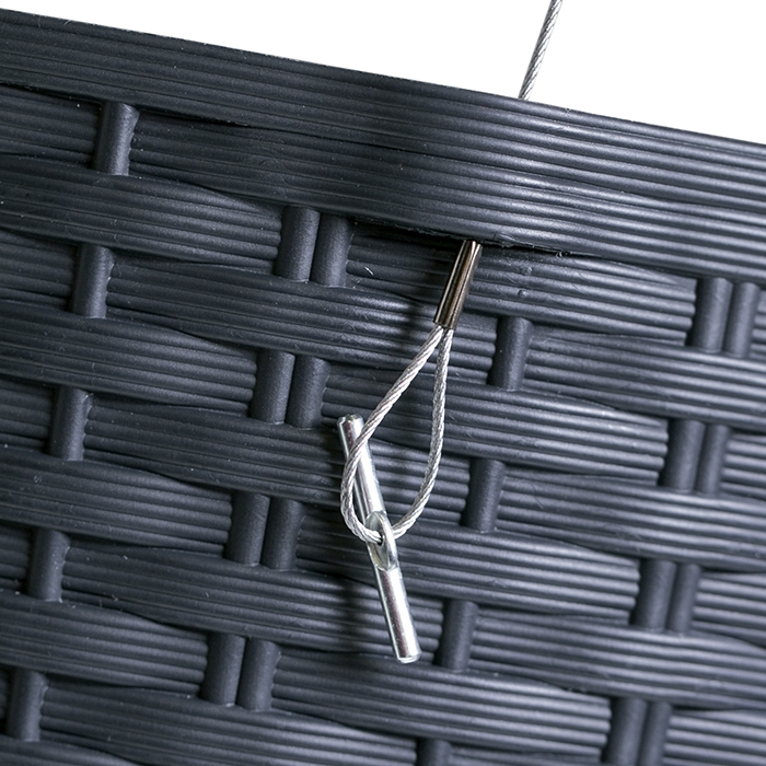 Doniczka wisząca okrągła Rato o fakturze wiernie imitującej plecionkę z naturalnego rattanu, pozwala kreować piękne unikatowe wnętrza i bez ograniczeń aranżować przestrzeń wokół domu. Dzięki dołączonej lince stalowej można powiesić doniczki na balustradzie czy balkonie . Jej funkcjonalność wyraża się przede wszystkim w komforcie użytkowania bez względu na aurę.