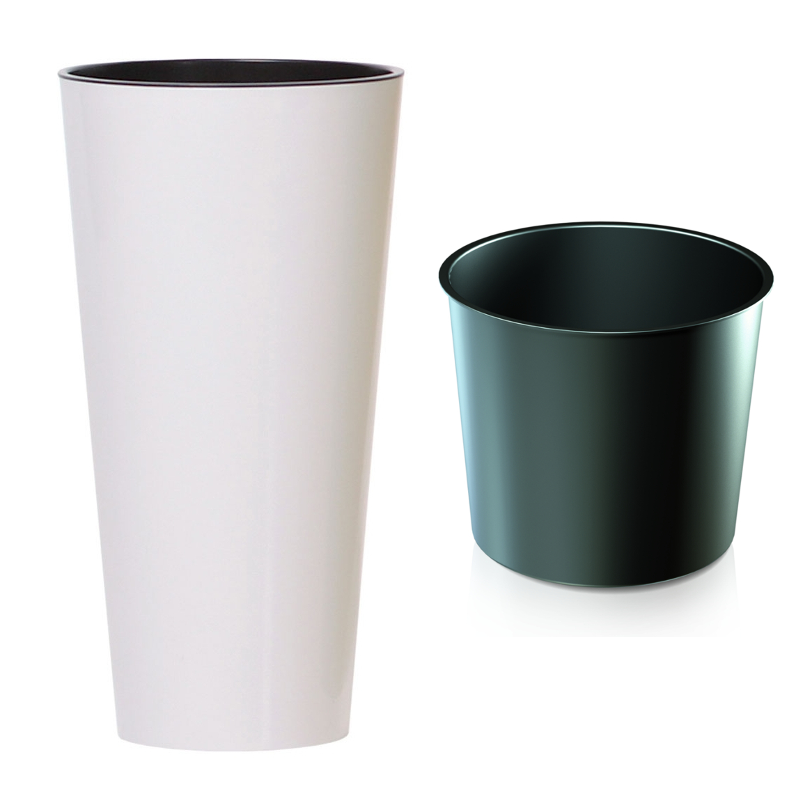 Wkład wewnętrzny do doniczek RATO Tubus pozwala na zmniejszenie przestrzeni wewnętrznej a tym samy wykorzystanie mniejszej ilości ziemi, system do nawadniania przeznaczony jest do zamontowania we wkładzie wewnętrznym.