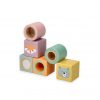 Klangbausteine, Holzbausteine, Bauklötze Baby – 6 Holzklötze: 4 Würfel, 2 Zylinder – Kinder Stapelspielzeug ab 1 Jahr – Sensorisches Spielzeug – Motorik-Spielzeug – Motiv Waldtiere