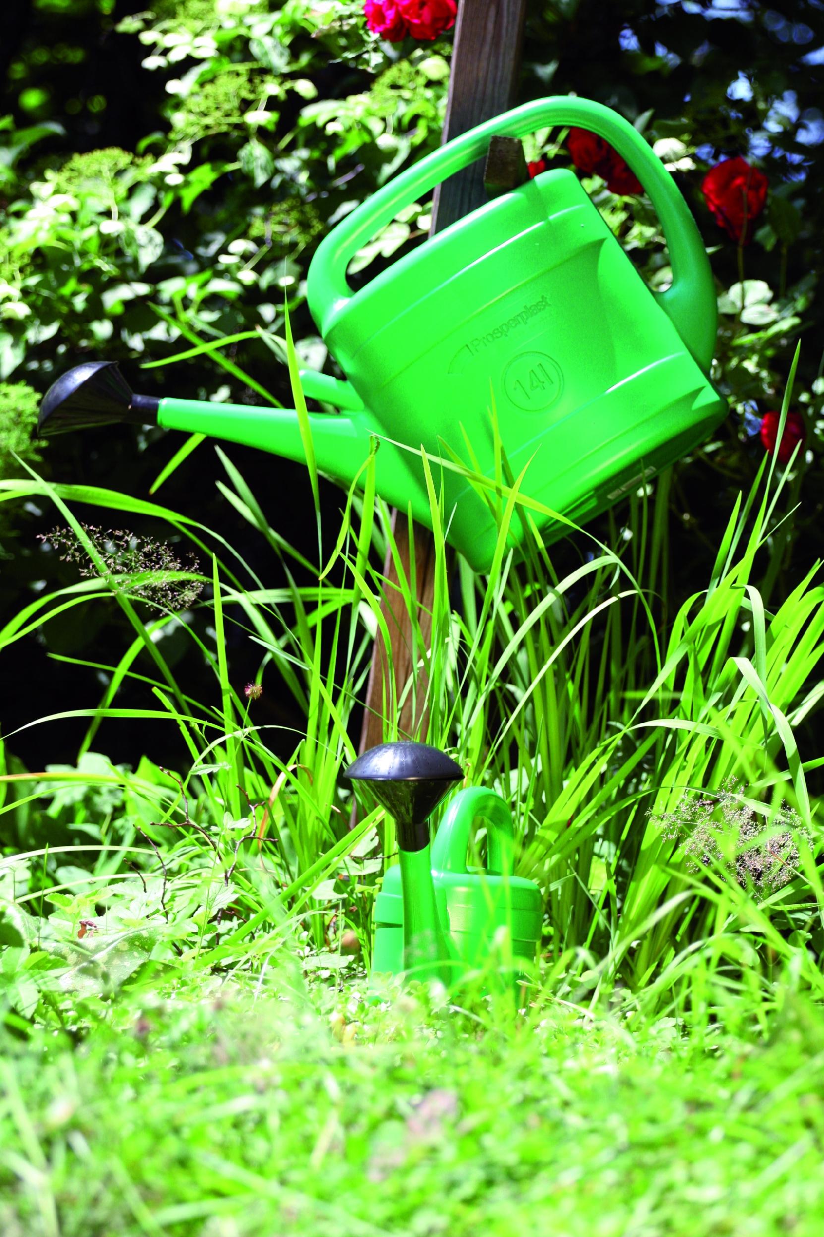Konewka ogrodowa o pojemności 14 l w kolorze zielonym.