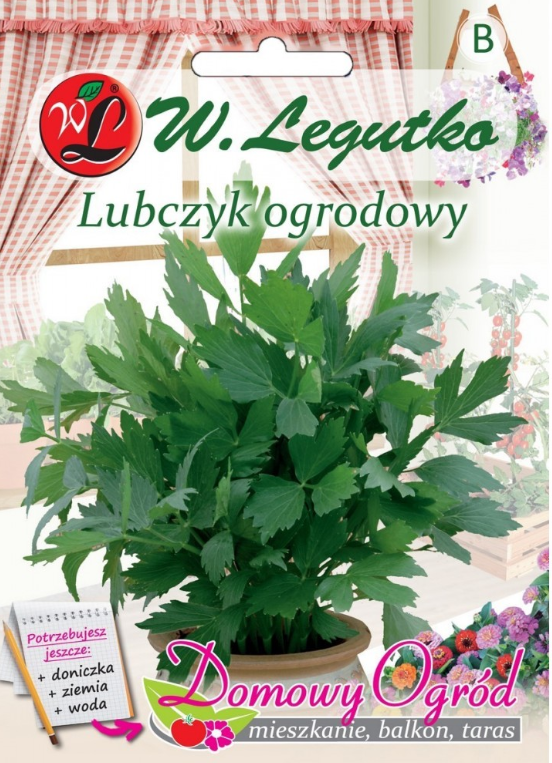 Seria nasion ” Domowy Ogród” umożliwia stworzenie własnego ogródka w doniczce, pojemniku lub skrzyce. Postępując zgodnie z instrukcja znajduącą się na opakowniu przekonasz się jak w łatwy sposób moża uprawiać rośliny w mieszkaniu na balkonie czy tarasie. Bez potrzeby posiadania ogródka będziesz miał dostęp do własnych warzyw i ziół. Lubczyk jest rośliną wieloletnią. Stosowany jest jako roślina przyprawowa do mięsa mielonego, sosów i zup. W medycynie ludowej uważany jest za afrodyzjak. Lubi stanowisko słoneczne lub półcieniste.