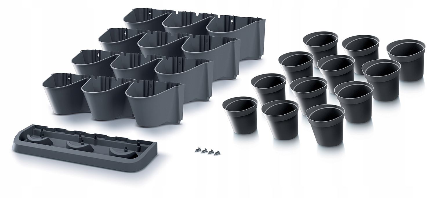 Doniczki łączone w różnych konfiguracjach tworzą spektakularne przenośne jedno- lub dwustronne zielone elementy dekoracyjne naszych wnętrz.