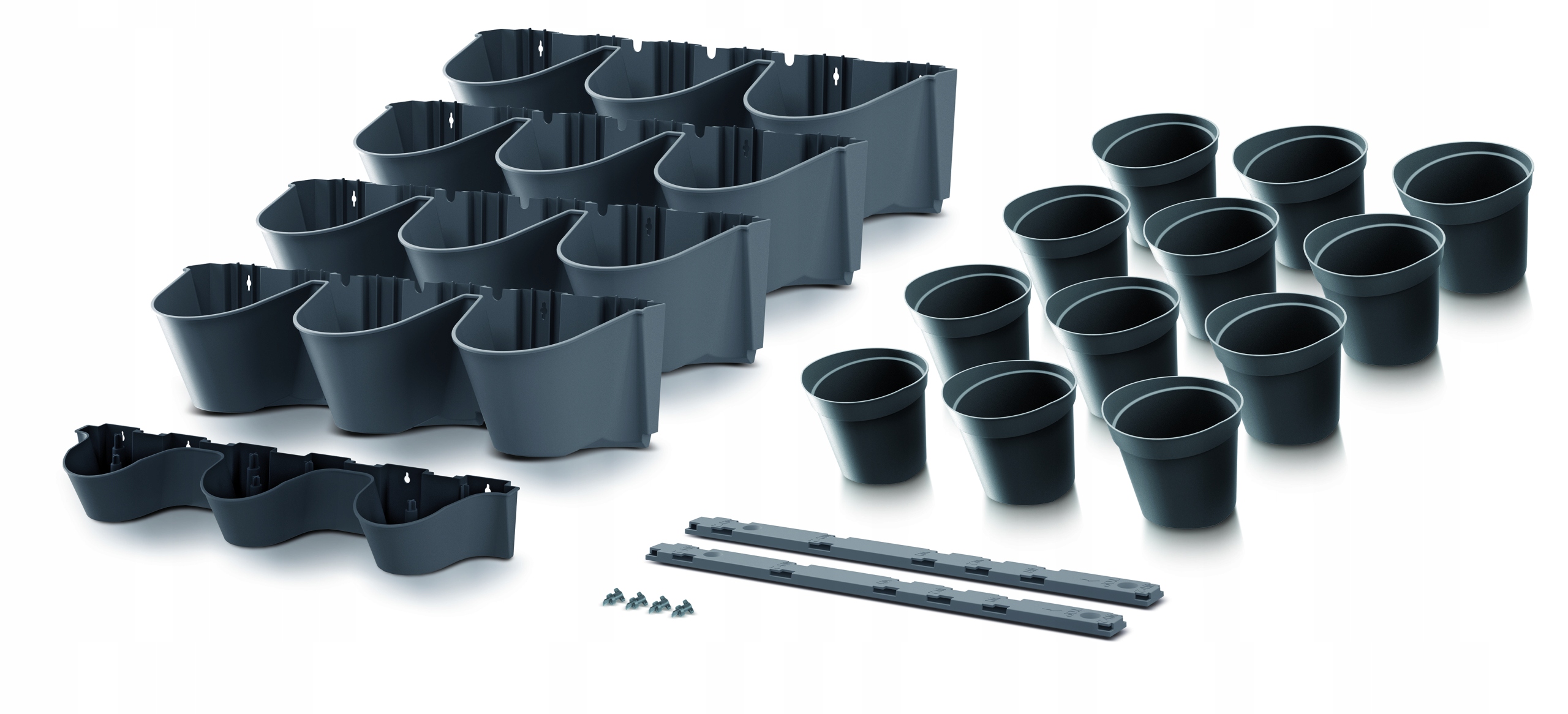 Doniczki łączone w różnych konfiguracjach tworzą spektakularne przenośne jedno- lub dwustronne zielone elementy dekoracyjne naszych wnętrz.
