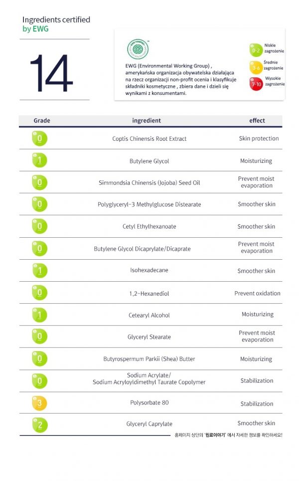 Pyunkang Yul Moisture Cream to delikatny, ale skuteczny krem nawilżający, stworzony przez renomowaną markę Pyunkang Yul, specjalizującą się w pielęgnacji skóry wrażliwej i problematycznej. Krem zawiera starannie dobrane składniki aktywne, które pomagają utrzymać skórę zdrową, nawilżoną i zrównoważoną. Produkt jest wolny od sztucznych barwników i substancji zapachowych, co czyni go idealnym wyborem dla osób o skórze wrażliwej i skłonnej do alergii.