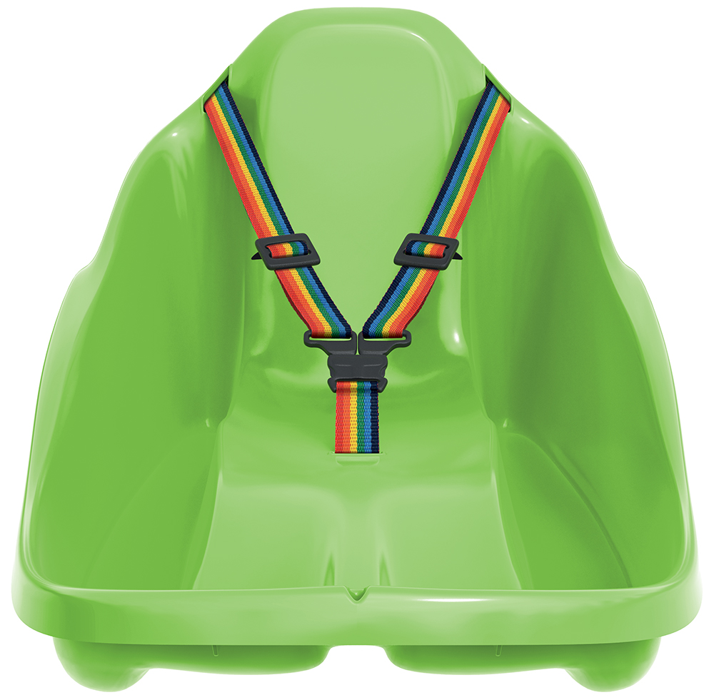 W trosce o bezpieczeństwo najmłodszych sanki TOPO wyposażono w wygodne oparcie oraz szelki.